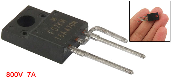 Product Name MOSFET Model No. FS7KM-16A Channel Type N-Channel Drain Source Voltage 800V Drain Current 7A Mounting Hole Diameter 3mm/ 1/8" Pin Size 14 x 2.5mm/ 0.55" x 0.1" ( L* Pitch) Total Size 29 x 10 x 4mm/ 1.14" x 0.39" x 0.16" (L*W*H) Weight 2.5g Package 1 x N-Channel MOSFET - Reviews