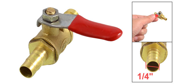Full Port 1/4" Hose Tail 2-way Red Lever Handle Ball Valve