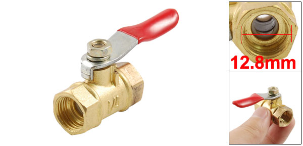 Product Name PEX Lever Handle Ball Valve Level Handle Size 45 x 11mm/1.77'' x 0.43'' (L*W) Thread Diameter 1/4" PT to 1/4" PT (12.8mm to 12.8mm) Total Size 55 x 17 x 35mm/2.17'' x 0.7'' x 1.38'' (L*W*H) Color Gold Tone & Red & Silver Tone Material Solid Brass Weight 33g Package 1 x Ball Valve - Reviews