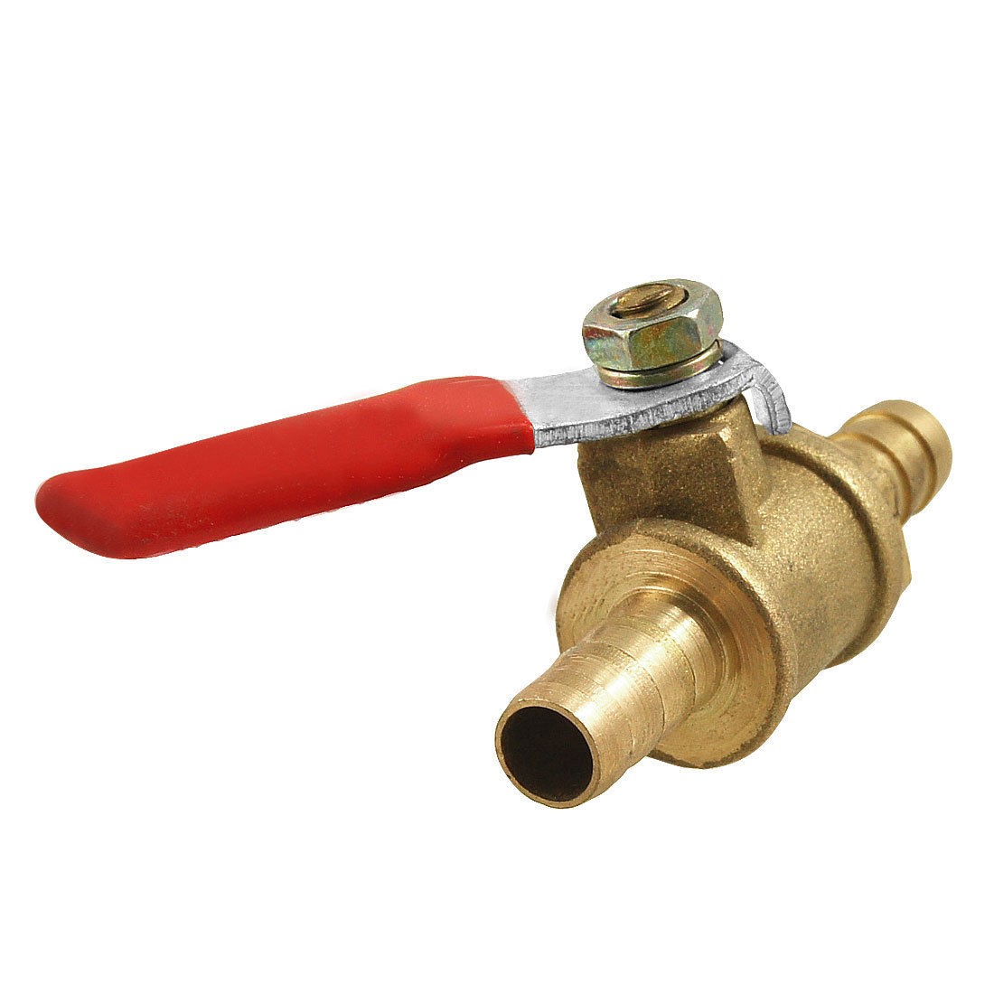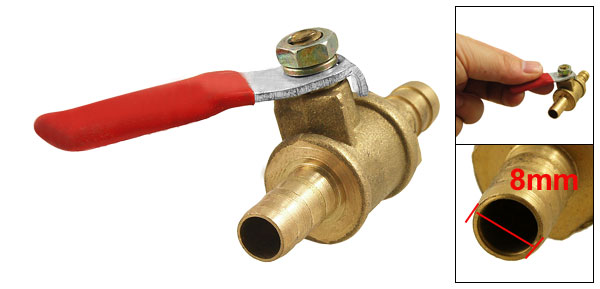 Product Name Lever Handle Ball Valve Hose Tail OD 8mm/0.31" Level Handle Size 48 x 11mm/1.9"x 0.43" (L*W) Total Size(Exclude Handle) 50 x 28 x 18mm/2"x 1.1"x 0.7" (L*W*H) Color Gold Tone & Red Material Metal Weight 35g Package 1 x Lever Handle Ball Valve - Reviews