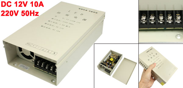 Product Name Rainproof Power Supply Model FY-120W-12V Application for LED Light Input 220V, 50Hz Output DC 12V 10A Size 19.5 x 11 x 5.5cm/ 7.6" x 4.3" x 2.1"(L*W*T) Shell Material Metal Color Off White Net Weight 654g Package Content 1 x LED Rainproof Power Supply - Reviews