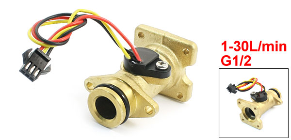 Product Name Water Flow Sensor Model SEN-HZ21CB Type Hall Effect Max Switch Current & Voltage 10mA, DC3-18V Rated Voltage DC 5V Working Range 1-30L/min Port Outside Dia G1/2 Max. Water Pressure 1.75Mpa Insulation Resistance 100M Ohm(Min.) Total Size 37 x 37 x 56mm/ 1.5" x 1.5" x 2.2"(L*Max.W*H) Mounting Hole Dia. 4mm/ 0.16" Cable Length 14cm/ 5.5" Main Material Brass Main Color Gold Tone Weight 122g Package Content 1 x Water Flow Sensor - Reviews