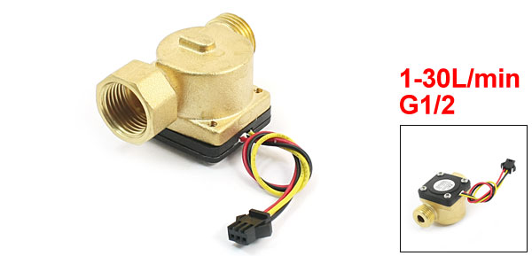 Product Name Water Flow Sensor Switch Model SEN-HZ21FA Type Hall Effect Max Switch Current & Voltage 10mA, DC3-18V Working Range 1-30L/min Male Female Port Thread Dia G1/2 Max. Pressure 1.75Mpa Insulation Resistance 100M Ohm(Min.) Total Size 65 x 37 x 37mm/ 2.6" x 1.5" x 1.5"(L*W*H) Cable Length 13cm/ 5.1" Main Material Copper Main Color Gold Tone, Black Weight 172g Package Content 1 x Water Flow Sensor Switch - Reviews