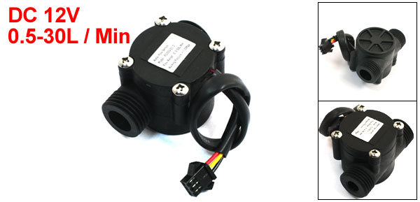 Product Name Water Flow Rate Sensor Model FS200A Voltage DC 12V Water Pressure Resistance <1.2MPa Working Rate 0.5-30L / Min ± 3% Thread Dia 20mm/G1/2" Size 5.7 x 3.5 x 3.5cm / 2.3" x 1.4" x 1.4"(L*W*T) Cable Length 15cm / 5.9" Material Plastic Color Black Net Weight 66g Package Content 1 x Water Flow Rate Sensor