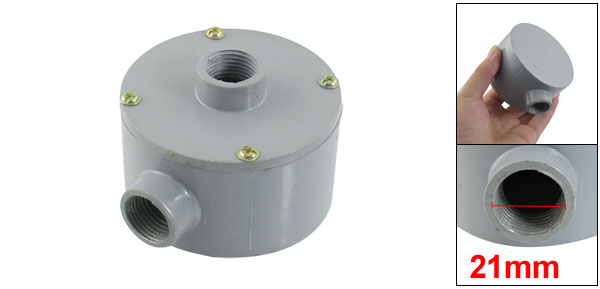 Product Name Junction Box Hole Quantity 2 Female Thread Diameter 21mm Hole Size G1/2" Total Size (Approx) 9.4 x 8.3 x 5.9cm / 3.7" x 3.3" x 2.3" (L*W*H) Material Metal Main Color Gray Weight 127g Package 1 x Junction Box - Reviews