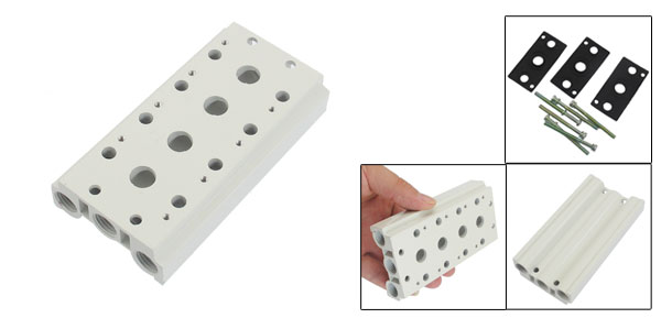 Product Name Electromagnetic Valve Base Model 200M-4F Stations 4 Press 0-0.8MPa Nominal Bore 10mm / 0.39" Tube Hole G1/4 Mounting Hole Diameter 3mm / 0.12" Total Size(Approx) 11.4 x 5.9 x 2.3cm / 4.5" x 2.3" x 0.89" (L*W*T)
