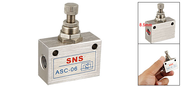 Product Name Flow Control Valve Model ASC-06 Flow Direction One Way Position Two Position Working medium Air Joint Pipe Bore Size G 1/8'' Thread Diameter 8.5mm/0.33'' Working pressure 0~0.95Mpa Working temperature 0~60 oC Total Size 4 x 1.8 x 5.4cm/1.6'' x 0.7'' x 2.1'' (L*W*H) Material Metal Color Gray Net Weight 68g Package Content 1 x Flow Control Valve - Reviews