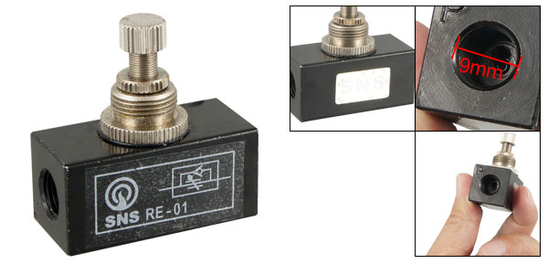 Product Name Flow Control Valve Model RE-01 Flow Direction One Way Position Two Position Working medium Air Joint Pipe Bore Size G 1/8" Thread Diameter 9mm/0.35'' Working pressure 0~0.95Mpa Working temperature 0~60 oC Total Size 4.2 x 2 x 4.3cm/1.7'' x 0.8'' x 1.7'' (L*W*H) Material Metal Color Black Net Weight 67g Package Content 1 x Flow Control Valve - Reviews