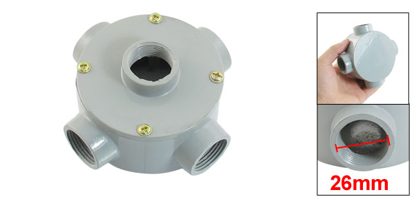 Product Name Junction Box Hole Quantity 5 Female Thread Diameter 26mm Hole Size G3/4" Total Size (Approx) 10.5 x 10.5 x 5.9cm / 4.2" x 4.2" x 2.3" (L*W*H) Material Metal Main Color Gray Weight 150g Package 1 x Junction Box - Reviews