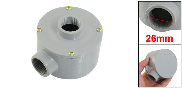 Product Name Junction Box Hole Quantity 2 Female Thread Diameter 26mm Hole Size G3/4" Total Size (Approx) 9.4 x 8.3 x 5.9cm / 3.7" x 3.3" x 2.3" (L*W*H) Material Metal Main Color Gray Weight 136g Package 1 x Junction Box - Reviews