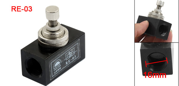 Product Name Flow Control Valve Model RE-03 Flow Direction One-Way Restrictive Valve Working Medium Air Joint Pipe Bore Size G3/8" Female Thread Dia 16mm/ 0.6" Working Pressure 0~0.95MPa Working Temperature 0~60 C Installing Thread Diameter 18mm/ 0.71" Suitable Board(Max) 4mm/ 0.16"(Adjustable) Body Size 50 x 25 x 25mm/ 1.97" x 0.98" x 0.98"(L*W*H) Overall Size 50 x 25 x 54mm/ 1.97" x 0.98" x 2.13"(L*W*H) Material Metal Main Color Black Net Weight 126g Package Content 1 x Flow Control Valve - Reviews