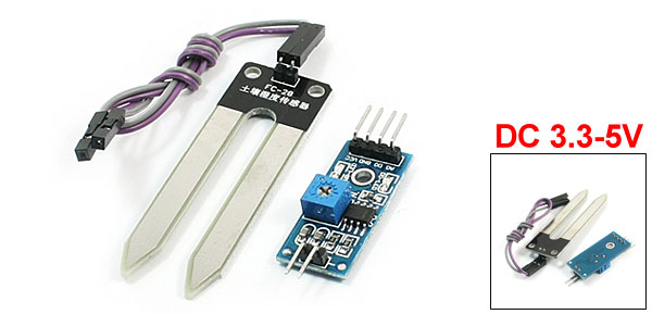 Product Name Soil Humidity Detection Sensor Module Working Voltage DC 3.3-5V Chip LM393 PCB Board Size 3.3 x 1.4 x 0.8cm/1.3" x 0.55" x 0.315"(L*W*T) Cable Length 18cm/7" Soil Sensor Size 6 x 2cm/2.4" x 0.78"(L*W) Materials Plastic, Metal Main Color Blue, Black Net Weight 8g Package Content 1 x Soil Humidity Detection Sensor Module