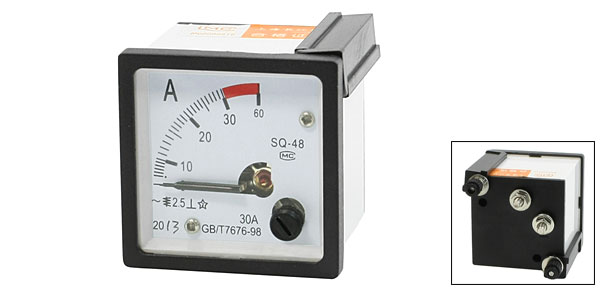 Product Name Analog Ammeter Model GB/T7676-98 Measuring Current Range AC 0-30A Accuracy Class 2.5 Meter Face Size(Approx) 4.8 x 4.8 x 4.4cm / 1.9" x 1.9" x 1.7"(L*W*H) Thread Size Bigger One: 0.39 x 1.2cm / 0.15" x 0.48"(D*L)