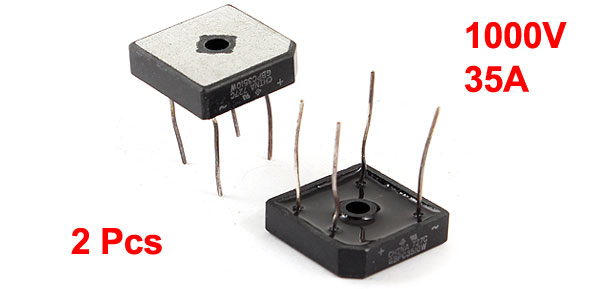 Product Name Bridge Rectifier Model GBPC3510W Max. Average Forward Rectified Current 35A Max. Recurrent Peak Reverse Voltage 1000V Lead Size 1 x 25mm/ 0.03" x 1"(D*Max.L) Dimension 29 x 29 x 7.6mm/ 1.1" x 1.1" x 0.3" (L*W*T) Mounted Hole Dia. 5.2mm/ 0.2" Material Plastic, Metal Color Black, Silver Tone Net Weight 28g Package Content 2 x Bridge Rectifier - Reviews