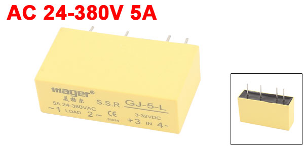 GJ-5-L AC 24-380V 5A to DC 3-32V Single Phase PCB SSR Solid State Relay Yellow