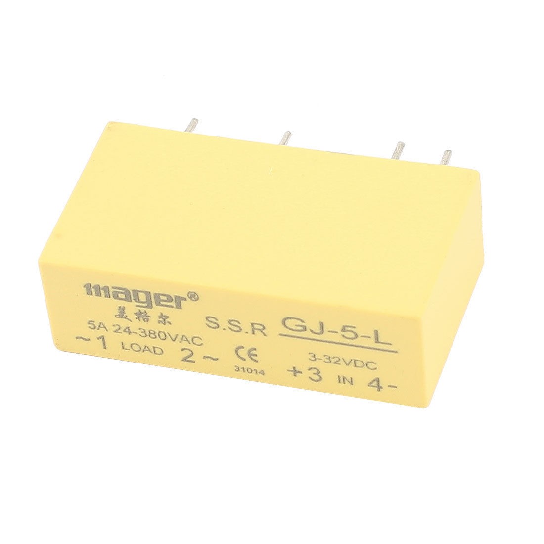 Main Color Yellow Input DC 3-32V Brand DMiotech Country of Manufacture CHINA Model GJ-5-L Pin Size 10 x 0.7mm/0.4" x 0.03"(L*D) Material Plastic, Metal Total Size 38 x 12 x 21cm/1.5" x 0.5" x 0.83" (L*W*H) Output AC 24-380V 5A Net Weight 19g Pin Pitch 5mm/0.2" 12mm/0.47" 10mm/0.4" Package Content 1 x Solid State Relay Pin Number 4 - Reviews
