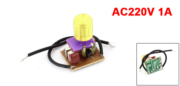 Product Name Dimmer Switch Rating AC220V 1A Knob Diameter 14mm/ 0.55" Overall Size 27 x 23 x 32mm/ 1.1" x 0.91" x 1.3"(L*W*T) Cable Length 9cm/ 3.5" Materials Plastic, Metal, Electric Parts Main Color Gold Tone Weight 12g Package Content 1 x Dimmer Switch - Reviews