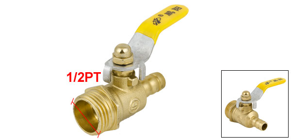 Gold Tone 20mm Male Thread to 10mm Hose Barb Lever Handle Brass Ball Valve
