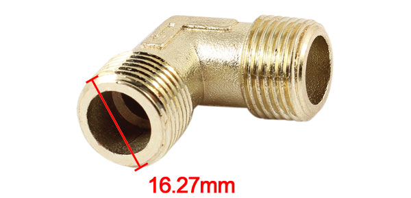 Product Name Pipe Connector Male Thread Dia 16.27mm / 3/8 PT Adapter Inner Dia 10.78mm/ 0.4" Overall Size (Approx.) 30 x 30 x 16.3mm / 1.2" x 1.2" x 0.63"(L*W*T) Material Metal Color Gold Tone Weight 30g Package Content 1 x Pipe Connectors - Reviews