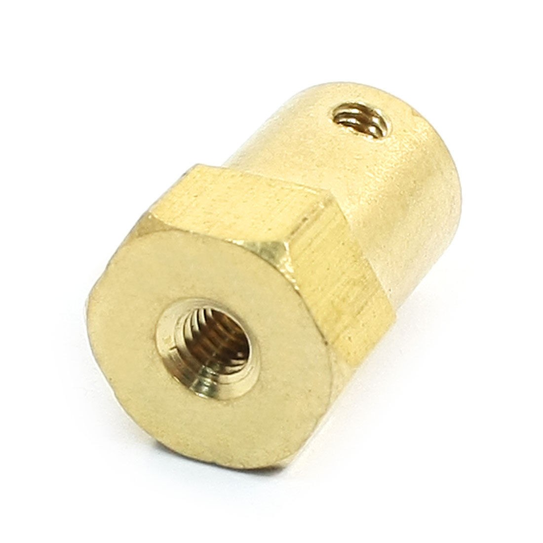 Product Name DC Geared Motor Hex Coupler Material Copper Color Gold Tone Total Size 18 x 12mm/ 0.71" x 0.47"(L*Max.W) Fit Motor Shaft Diameter 3mm/ 0.12" Hex Hole Diameter 3.5mm / 0.14" Screw Fixed Hole Diameter 2.8mm/ 0.11" Weight 15g Package Content 1 x DC Geared Motor Hex Coupler  - Reviews