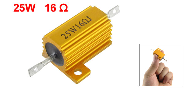 Product Name Aluminum Resistor Resistance Value 16Ω Power Rating 25W Resistance Tolerance ± 5% (J) Body Size 2.6 x 1.5cm / 1." x 0.6" (L*D) Total Size 5.5 x 2cm/ 2.1" x 0.78" (L*W) External Material Aluminum Color Gold Tone Net Weight 14g Package Content 1 x Aluminum Resistors - Reviews