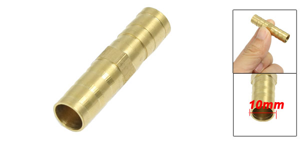 Product Name Straight Hose Connector Joiner Material Brass Color Gold Tone Size 41 x 11mm / 1.6" x 0.4" (L*Max.D) Mouth Diameter 10mm / 0.4" Weight 7g Package Content 1 x Straight Hose Connector Joiner - Reviews
