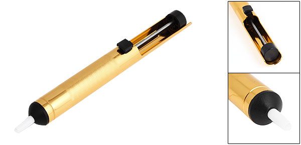 Product Name Desoldering Pump Material Aluminum, Plastic Color Gold Tone, White, Black, Silver Tone Total Size 19 x 2 cm / 7.5" x 0.8" (L*D) Net Weight 46g Package Content 1 x Desoldering Pump - Reviews