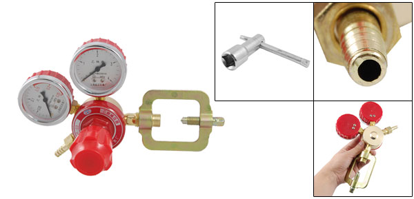 Gold Tone Red Welding Acetylene Regulator w 2 MPa Decrement Gauges