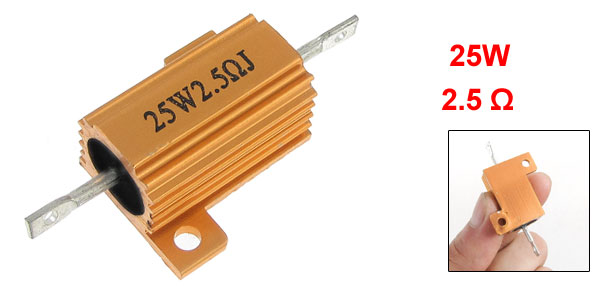 Product Name Aluminum Resistor Resistance Value 2.5 Ω Power Rating 25W Resistance Tolerance ± 5% (J) Body Size 2.6 x 1.5cm / 1." x 0.6" (L*D) Total Size 5.5 x 2cm/ 2.1" x 0.78" (L*W) External Material Aluminum Color Gold Tone Net Weight 14g Package Content 1 x Aluminum Resistors - Reviews