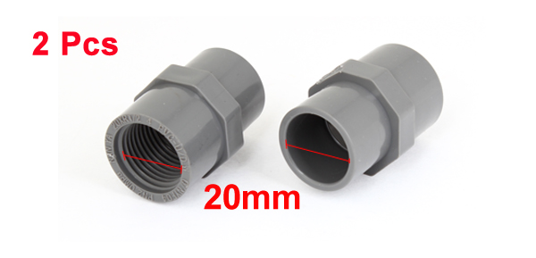 Product Name Pipe Connector Material PVC Fit Hose Inner Dia (Approx.) 20mm/ 0.79" Female Thread Dia. 20mm/ 1/2" PT Overall Size 30 x 43mm / 1.2" x 1.7"(D*H) Color Gray Weight 31g Package Content 2 x Pipe Connectors - Reviews