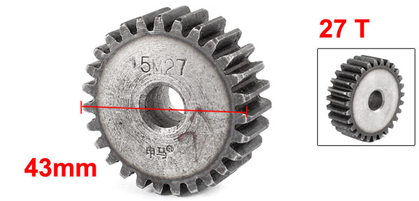 Gray 10mm x 43mm x 15mm Module 1.5 27 Teeth Metal Straight Spur Gear Wheel