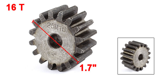 Product Name Gear Teeth Number 16 Module 2.5 Type Straight Gear Inner Hole Diameter 10mm / 0.3" Outer Dia 44mm / 1.7" Thickness 25mm/1“ Material Metal Color Gray Net Weight 216g Package Content 1 x Gear - Reviews
