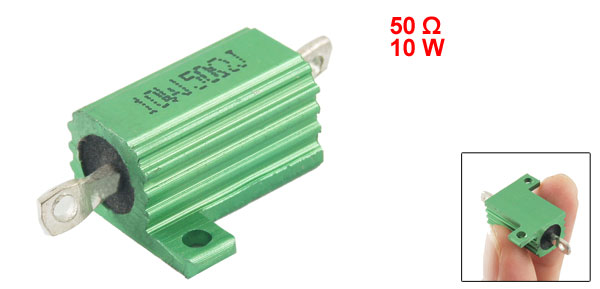 Product Name Aluminum Housed Resistor Resistance Value 50 Ω Power Rating 10W Resistance Tolerance ± 5% (J) Body Size 18 x 11mm/ 0.71" x 0.43" (L*D) Mounted Hole Size 1.8mm/ 0.07", 2mm/ 0.08" Total Size 32 x 16 x 11mm/ 1.2" x 0.63" x 0.43" (L*W*T) Casing Material Aluminum Color Green Weight 5g Package Content 1 x Aluminum Housed Resistor - Reviews
