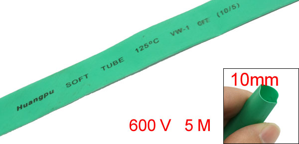 Green 10mm Diameter Polyolefin 2:1 Halogen-Free Heat Shrink Tubing 5M 16.5Ft