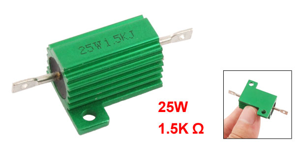 Product Name Aluminum Resistor Resistance Value 1.5K Ω Power Rating 25W Resistance Tolerance ± 5% (J) Body Size 26 x 15mm/1" x 0.6" (L*D) Mounted Hole Size 1.8mm/ 0.07", 3.3mm/ 0.13" Total Size 50 x 27 x 15mm/2" x 1.1" x 0.6" (L*W*T) Casing Material Aluminum Color Green Weight 13g Package Content 1 x Aluminum Resistor - Reviews