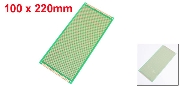 Product Name Universal PCB Board Hole Dia(Approx) 1mm / 0.039" Hole Pitch(Approx) 2.54mm / 0.1" Size(Approx) 100 x 220mm / 3.9" x 8.7"(W*L) Thickness(Approx) 1.6mm / 0.063" Material FR-4, Copper Color Copper Tone, Green Net Weight 60g Package Content 1 Pcs x Universal PCB Board - Reviews