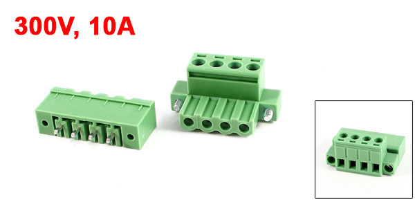 Green 4Pin 5.08mm Spacing Pluggable PCB Screw Terminal Block 300V 10A AWG24-12