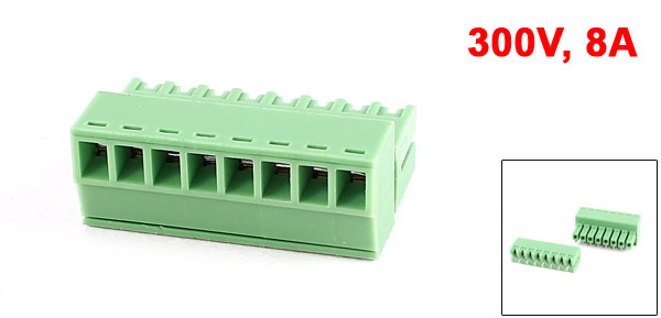 Product Name PCB Terminal Block Material Plastic Wire Gauge AWG22-16 Rated Value 300V, 8A Poles 8P Pin Distance 3.5mm Total Size 29 x 22 x 11mm/1.1" x 0.87" x 0.43" (L*W*H) Color Green,Silver Tone Weight 8g Package Content 1 x 8P PCBTerminal Block - Reviews