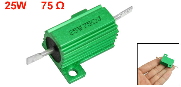 Product Name Aluminum Resistor Resistance Value 75 Ω Power Rating 25W Resistance Tolerance ± 5% (J) Body Size 26 x 15mm/1" x 0.6" (L*D) Mounted Hole Size 1.5mm/0.06", 2.5mm/0.1" Total Size 53 x 27 x 15mm/2.1" x 1.1" x 0.6" (L*W*T) Casing Material Aluminum Color Green Weight 13g Package Content 1 x Aluminum Resistor - Reviews