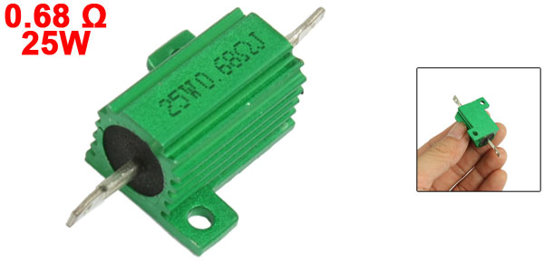Product Name Aluminum Housed Resistor Resistance Value 0.68Ω Power Rating 25W Resistance Tolerance ± 5% (J) Body Size 26.5 x 10mm / 1" x 0.39"(L*D) Mounted Hole Dia. 3.4mm / 0.13" Overall Size 55 x 28 x 15mm/ 2.2" x 1.1" x 0.6"(L*W*H) Casing Material Aluminum Color Green Weight 14g Package Content 1 x Aluminum Housed Resistor - Reviews