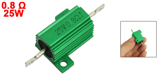 Product Name Aluminum Housed Resistor Resistance Value 0.8Ω Power Rating 25W Resistance Tolerance ± 5% (J) Body Size 26.5 x 10mm / 1" x 0.39"(L*D) Mounted Hole Dia. 3.4mm / 0.13" Overall Size 55 x 28 x 15mm/ 2.2" x 1.1" x 0.6"(L*W*H) Casing Material Aluminum Color Green Weight 14g Package Content 1 x Aluminum Housed Resistor - Reviews