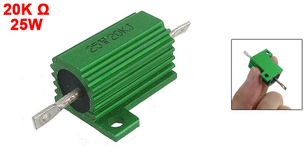 Product Name Aluminum Housed Resistor Resistance Value 20KΩ Power Rating 25W Resistance Tolerance ± 5% (J) Body Size 15.3 x 26.6mm / 0.6" x 1.0" (Dia.*L) Mounted Hole Diameter 3.4mm / 0.13" Total Size 50 x 27.5 x 15.3mm / 2.0" x 1.1" x 0.6"(L*W*T) Casing Material Aluminum Color Green Weight 14g Package Content 1 x Aluminum Housed Resistor - Reviews