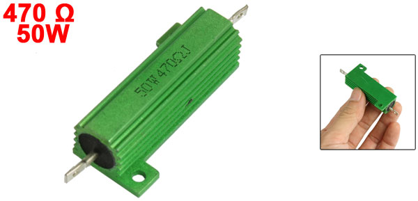 Product Name Aluminum Housed Resistor Resistance Value 470Ω Power Rating 50W Resistance Tolerance ± 5% (J) Body Size 50 x 11mm/ 2" x 0.4"(L*D) Mounted Hole Dia. 3.4mm / 0.13" Overall Size 71 x 26 x 16mm/ 2.8" x 1" x 0.6"(L*W*H) Casing Material Aluminum Color Green Weight 24g Package Content 1 x Aluminum Housed Resistor - Reviews
