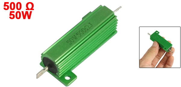 Product Name Aluminum Housed Resistor Resistance Value 500Ω Power Rating 50W Resistance Tolerance ± 5% (J) Body Size 50 x 11mm/ 2" x 0.4"(L*D) Mounted Hole Dia. 3.4mm / 0.13" Overall Size 71 x 26 x 16mm/ 2.8" x 1" x 0.6"(L*W*H) Casing Material Aluminum Color Green Weight 24g Package Content 1 x Aluminum Housed Resistor - Reviews