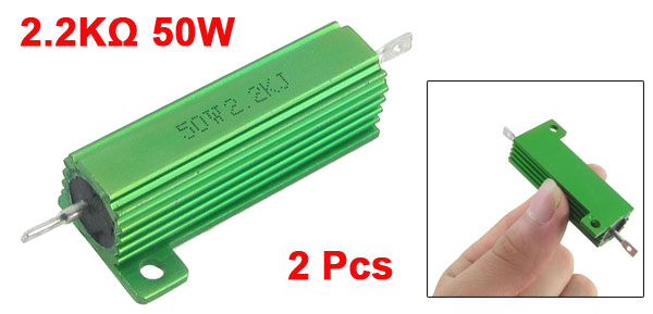 Green Aluminum Shell Wire Wound 50W 5% 2.2K Ohm Resistors Resistance 2 Pcs