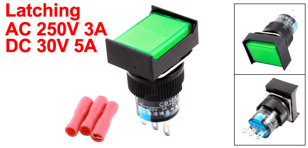 Item Name Push Button Switch Action Type Latching Contact Type SPDT Working Voltage AC 250V 3A, DC 30V 5A Mounting Thread Diameter 16mm / 0.63" Terminals 3Pin Overall Size 24 x 18 x 32mm / 0.94" x 0.71" x 1.3"(L*W*H) Material Plastic, Electronic Parts Main Color Blue, Black, Green Weight 10g Package Content 1 x Push Button Switch