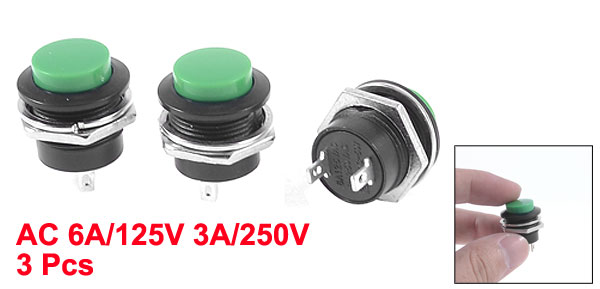 Green Cap 10mm Momentary OFF-(ON) AC 6A/125V 3A/250V Push Switch 3 Pcs