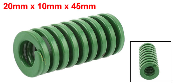 Product Name Die Spring Size 20 x 10 x 45mm/ 0.8" x 0.4" x 1.8"(OD* Inner Dia * L) Materials Chromium Alloy Steel Color Green Net Weight 45g Package Content 1 x Die Spring - Reviews