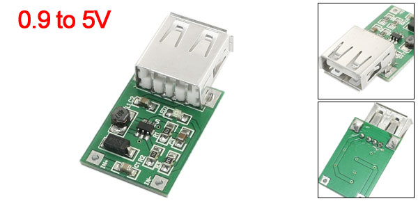 Product Name Step Up Boost Module Input Voltage 0.9 to 5V Output 5V, 600mA Size 33 x 18 x 10mm/ 1.3" x 0.71" x 0.4"(L*W*T) Material Electric Part, Plastic Main Color Green, Silver Tone Weight 5g Package Content 1 x Step Up Boost Module - Reviews