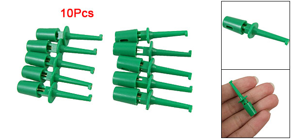 Green Electrical Lead Wire Testing Hooks Clip Set 10Pcs
